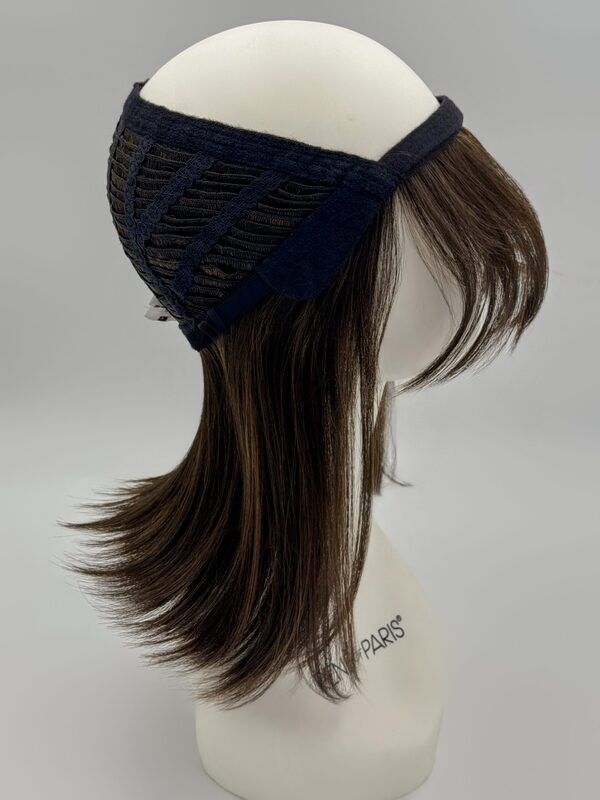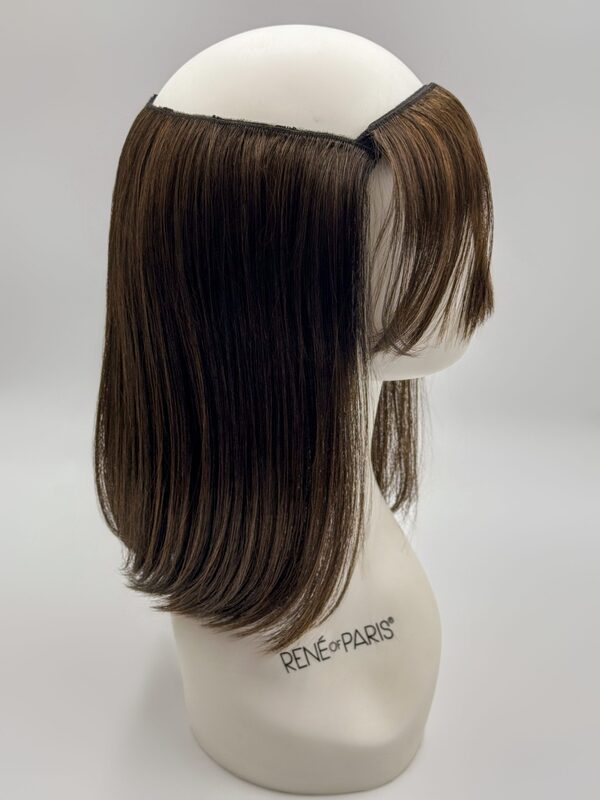 ROP Halo Top Piece is a mid-length synthetic hair topper from the Hi-Fashion Collection. This hair enhancer is a straight hair piece with a detachable fringe and can be worn under a hat or turban! The cap construction is machine made and worn from the crown to the nape.Â